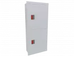 Дверца пожарного шкафа открывается на 160 градусов, открывание двери универсальное (правое и левое). Дверца имеет дополнительные загибы для усиления жесткости конструкции. На двери и корпусе шкафа предусмотрены отверстия для опломбирования шкафа. Дверь пожарного шкафа имеет запорное устройство в виде пластиковой защелки. Дверь закреплена с помощью монтажного штифта, при необходимости она может быть снята в результате простого нажатия на кнопку штифта.